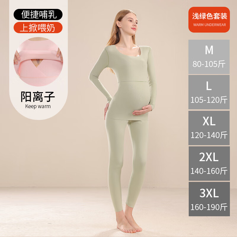 ROVO孕妇保暖内衣哺乳秋衣秋裤套装秋冬产后喂奶怀孕期打底衣月子服 浅绿套装【7A抗菌 双面暖绒】 3XL