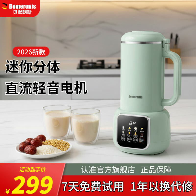 贝默朗斯(Bemeronis)德国破壁机家用小型1-2人用宝宝料理婴儿辅食机加热米糊机全自动迷你多功能静轻音豆浆机新款 绿宝石