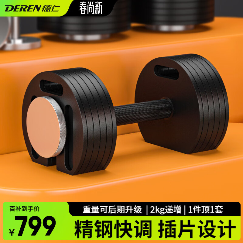 汇聚德仁快调哑铃可调节纯钢男士家用运动锻炼健身器材插片式纯钢大师 【纯钢】48KG(24KG两只)2kg递增