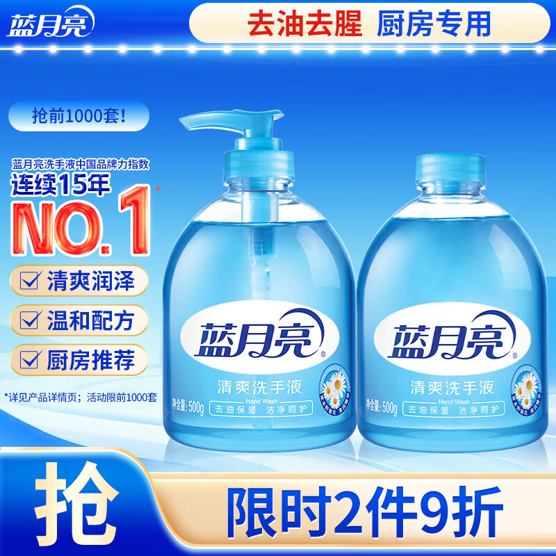 蓝月亮洗手液泡沫丰富清爽去油去腥500g+洗手液补充装500g