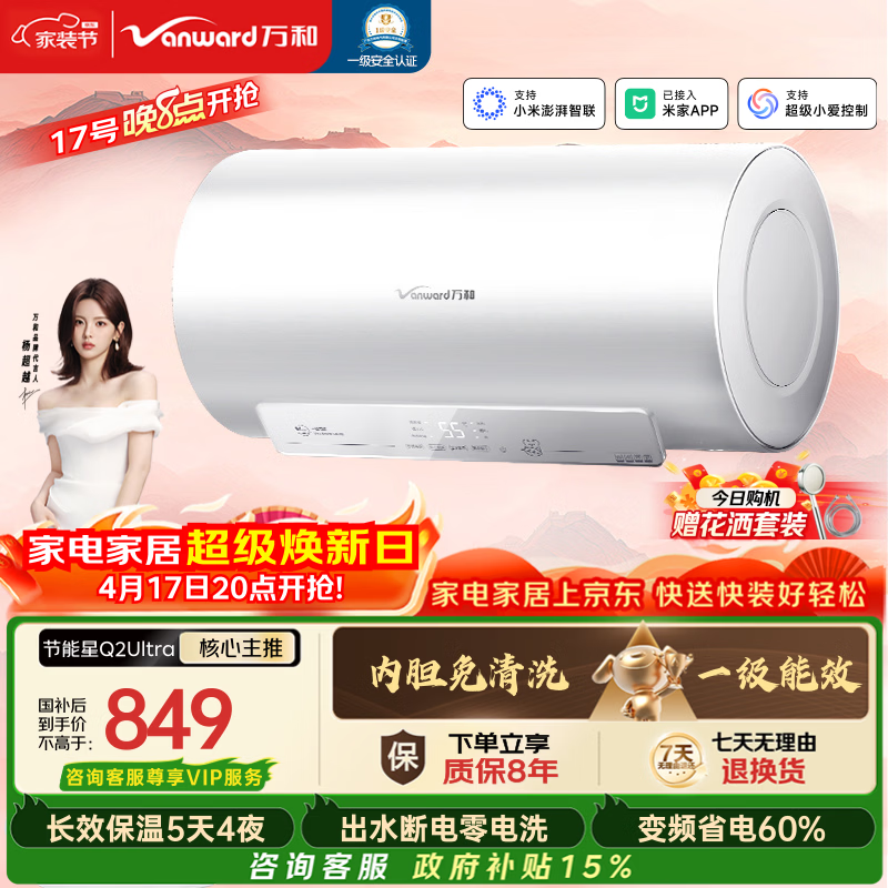 万和【节能星Q2Ultra】60升3300W变频速热一级能效出水断电免换镁棒电热水器国家补贴15%