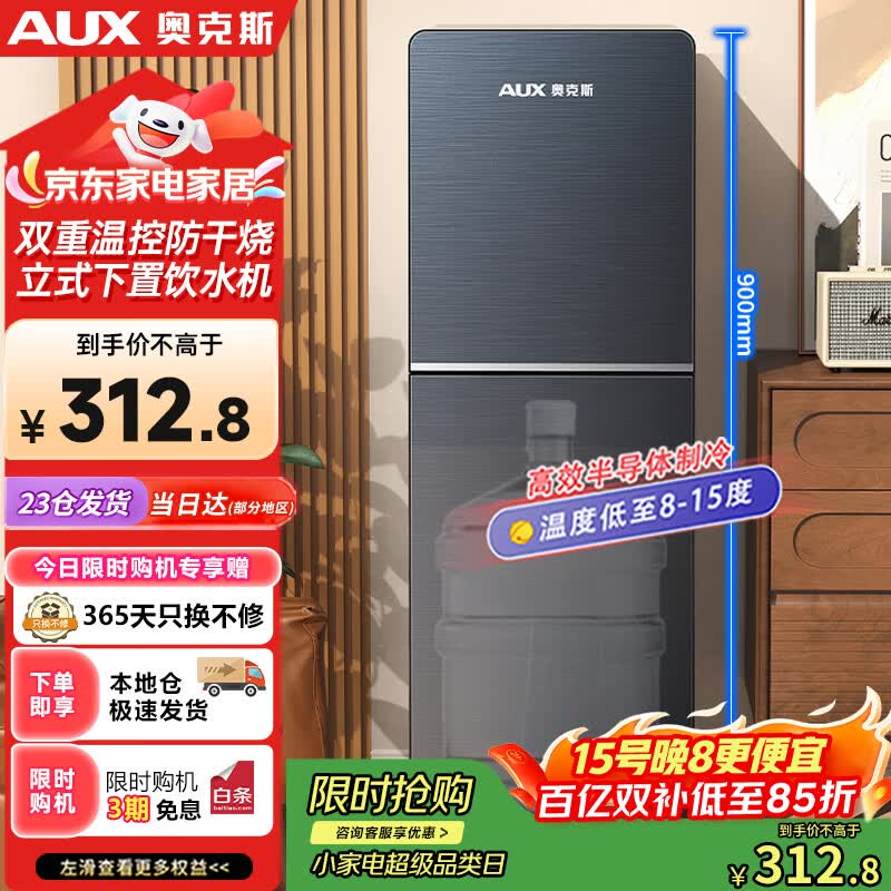 奥克斯(AUX)饮水机家用冲奶立式制冷款快速加热下置水桶饮水器YLR-5-X-28