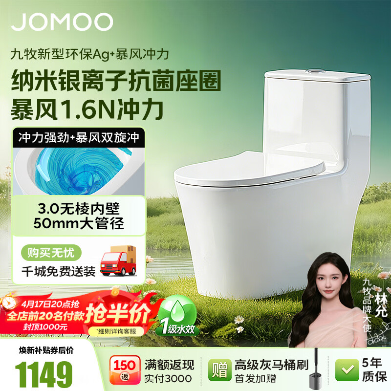 九牧(JOMOO)马桶 家用虹吸式马桶大冲力节水坐便器 防臭瞬冲 易洁抗菌马桶 银离子抗菌-易洁无棱11322-400坑