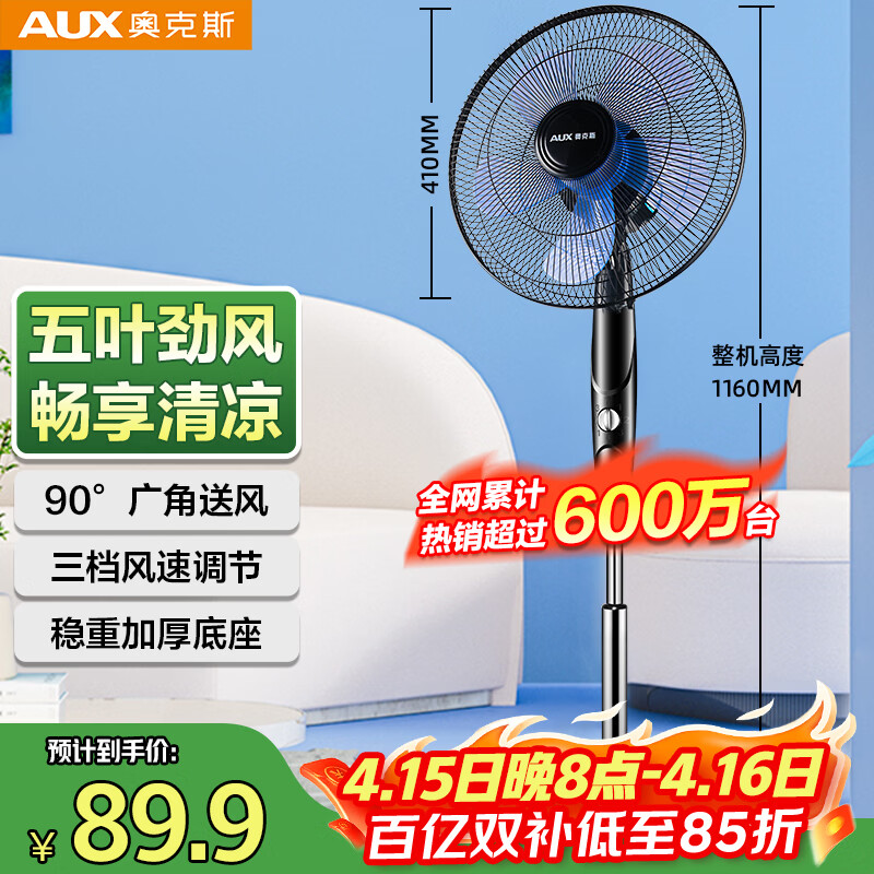 奥克斯(AUX)FS1613 电风扇/落地扇/空气流通/交流定频工业落地扇/工程家用风扇/五叶大风量风扇
