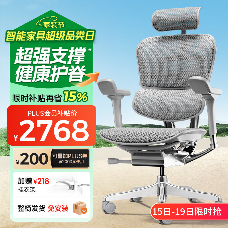 Ergonor保友金豪E2/金豪E2 Pro 高端人体工学椅 电脑椅办公椅家用电竞椅 【金豪E2】银白网 整椅发货 送货上门