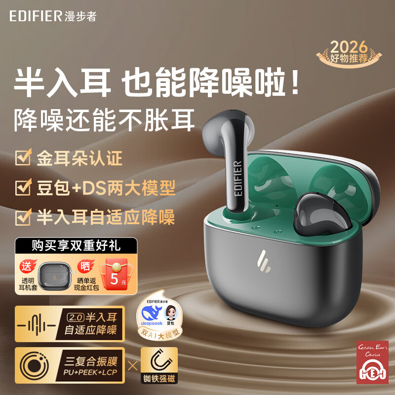 漫步者(EDIFIER)AtomANC 半入耳式原子豆ANC 主动降噪真无线蓝牙耳机 AI翻译 适配华为苹果小米2026年新品 暮云灰