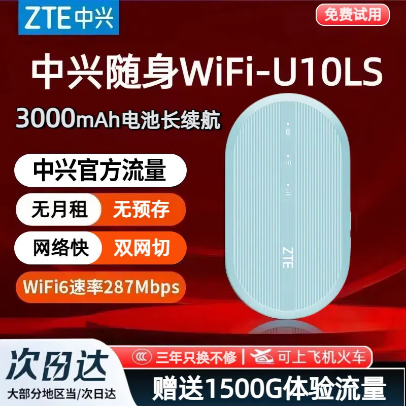 中兴【热销榜NO.1】U10LS随身wifi6免插卡无线高速支持2026款5G/4G便携路由器移动联通电信全国通用 顶配款【升级3000毫】安续航WiFi6-绿色 中兴官方送1500G-网速稳定不虚标-三年质保换新