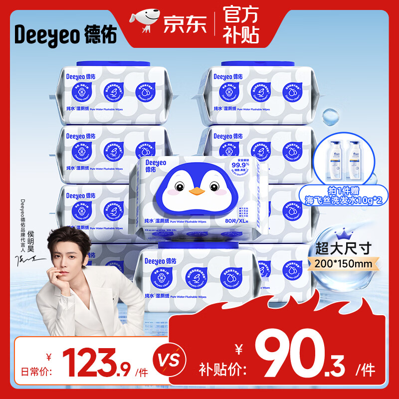 德佑纯水湿厕纸家庭装80抽*10包XL码 湿纸巾厕纸厕所湿巾卫生纸