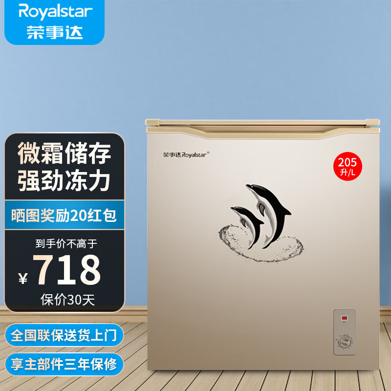 荣事达(Royalstar)小冰柜家用小型冷冻保鲜迷你冷藏商用卧式冷柜单用储母乳柜节能省电 【一级节能 风机减霜】微霜款 205L