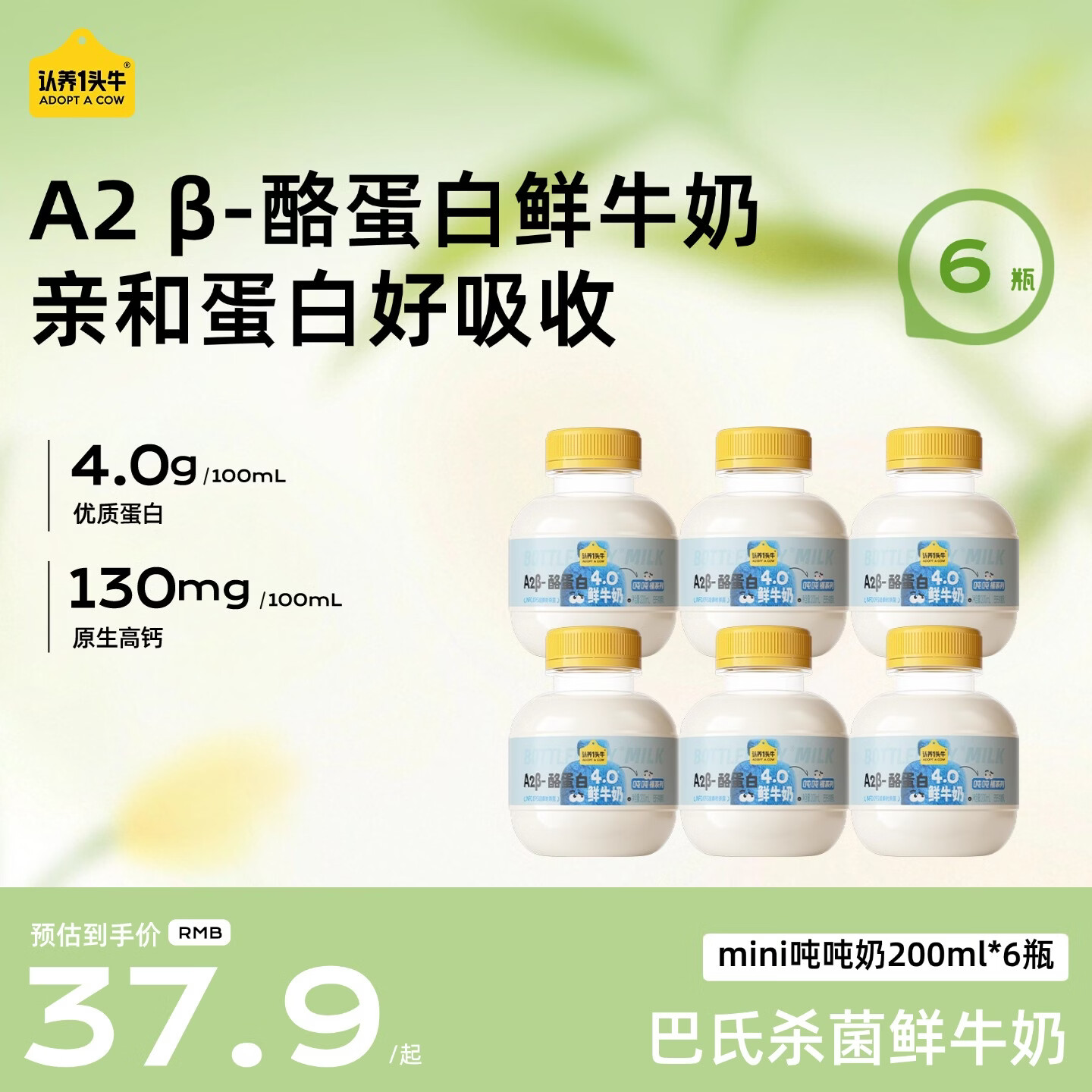 认养一头牛【代言人同款】mini吨吨奶A2β-酪蛋白4.0牛乳鲜牛奶营养儿童牛奶 mini吨吨200ml*6瓶