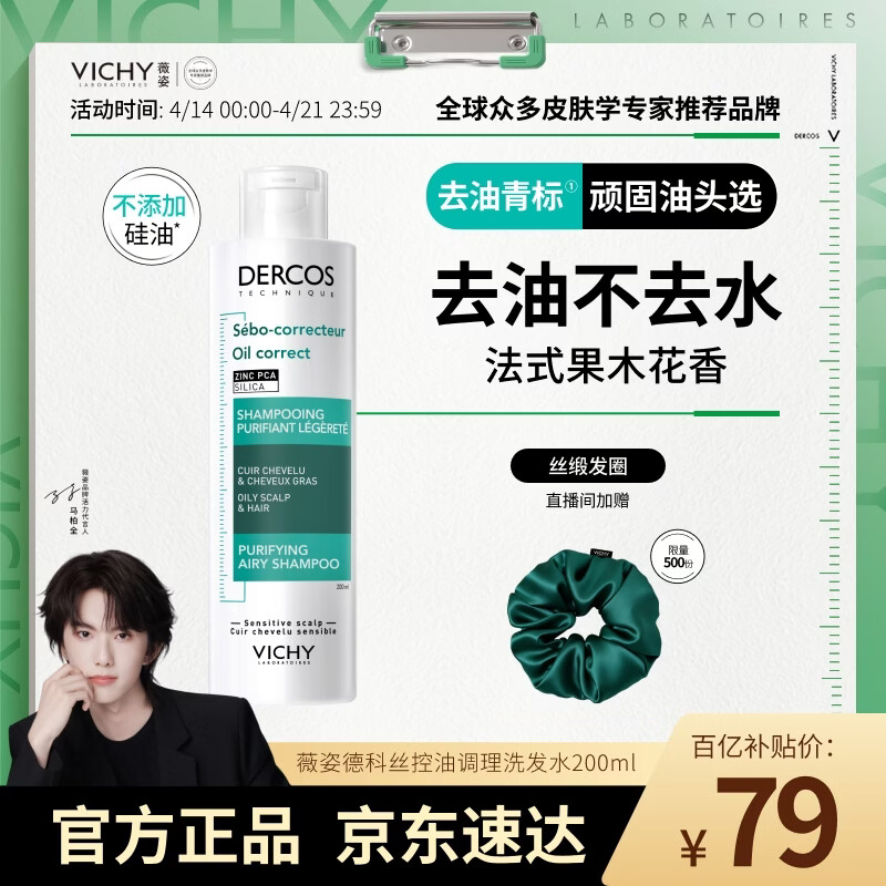 薇姿(VICHY)去油青标洗发水男士女士控油洗发水无硅油清爽洗发露200ml