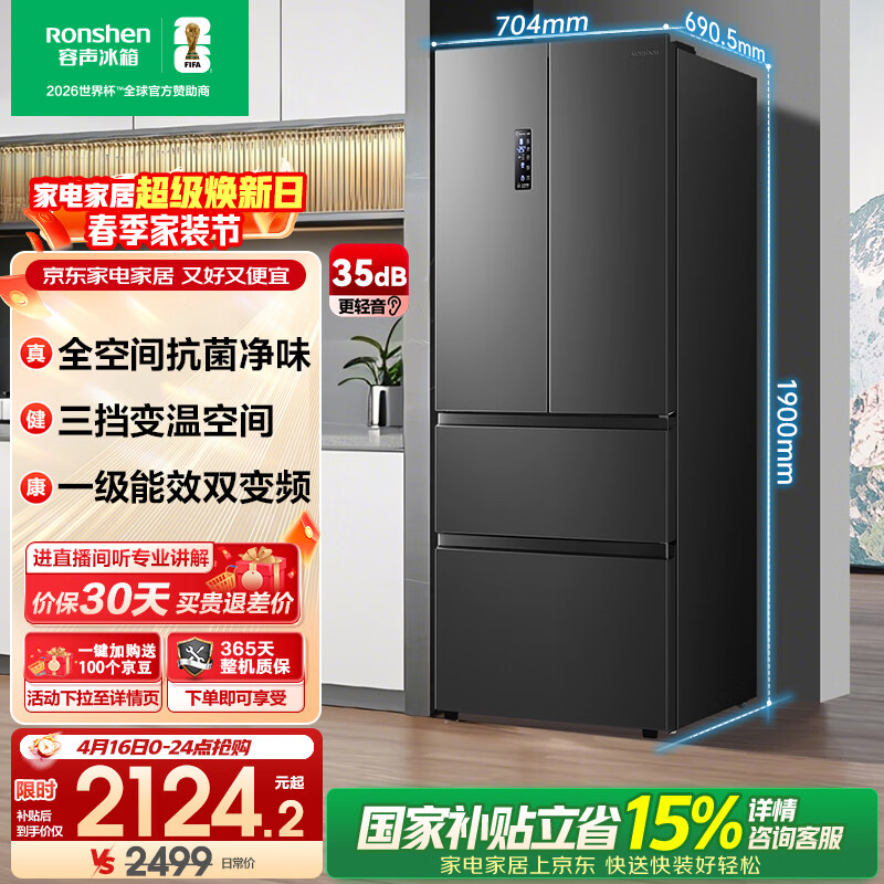 容声456L法式多门冰箱小户型超薄一级能效风冷无霜双变频节能四开门以旧换新BCD-456WD18MP国家补贴