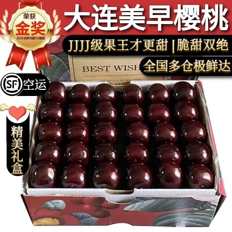 三萌果蔬 车厘子樱桃【JD顺丰空运-多地次日达】大连美早樱桃新鲜水果送礼 2斤(净重) (较划算-独享装)尝鲜礼盒 【金奖级丨独享爽吃】 3J 巨无霸 30-32mm