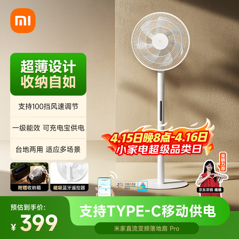 米家小米电风扇落地扇家用直流变频超静音自然风台地两用 轻音节能智能控制蓝牙遥控轻薄电扇Pro