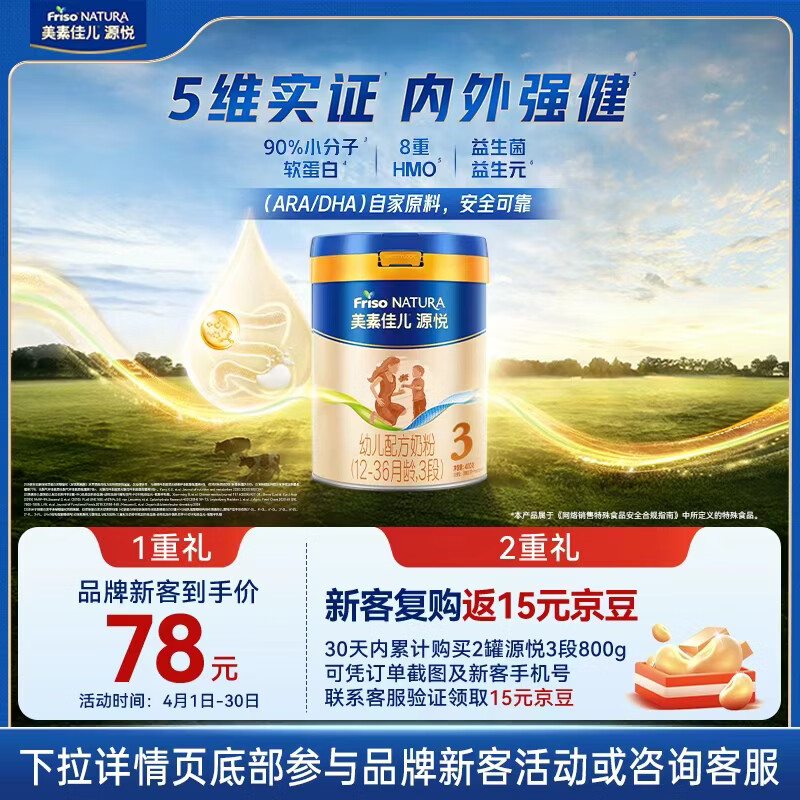 美素佳儿源悦幼儿配方奶粉(12-36月龄,3段)罐装400g (新国标)
