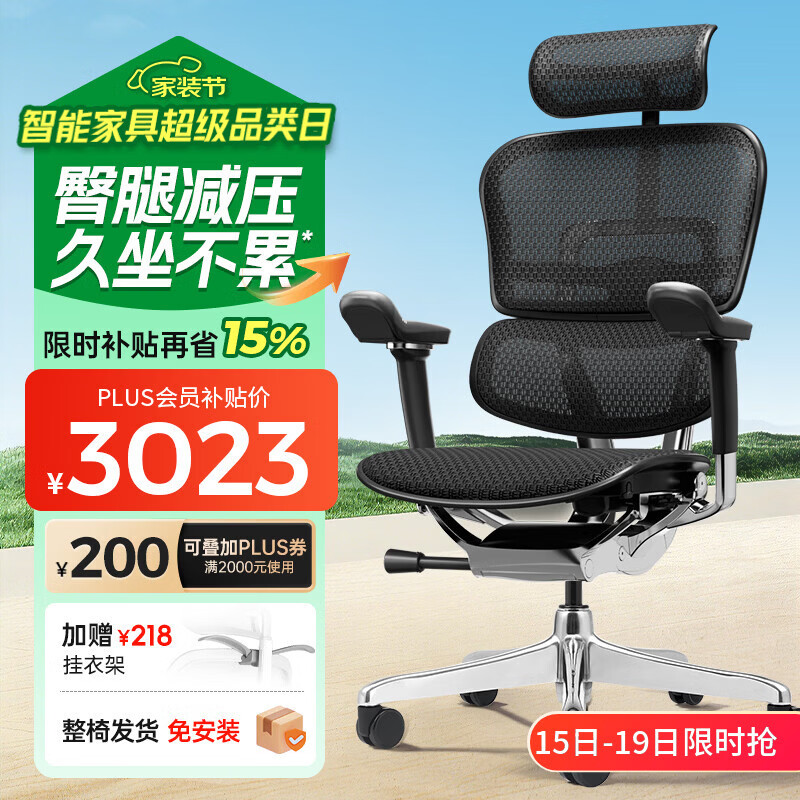 Ergonor保友金豪E2/金豪E2 Pro 高端人体工学椅 电脑椅办公椅家用电竞椅 【金豪E2 Pro】黑色网 整椅发货 送货上门
