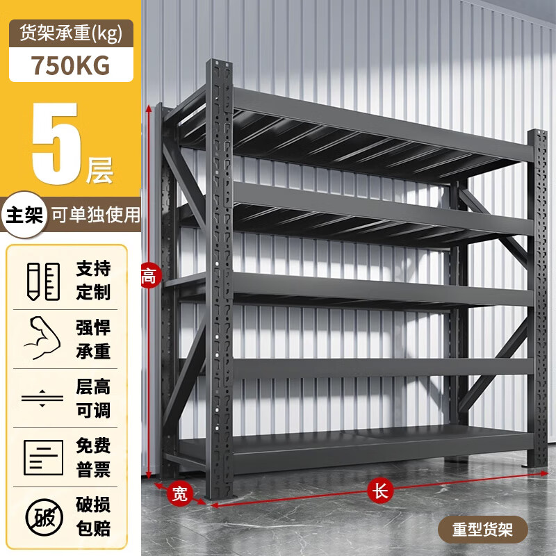 净魔师货架置物架仓储仓库家用落地储物间货物架加厚全钢多层展示架子 五层货架-重型【750KG】 --灰白/蓝色/黑黄/黑色/橘蓝--