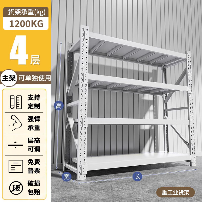 净魔师货架置物架仓储仓库家用落地储物间货物架加厚全钢多层展示架子 四层货架-重工业【1200KG】 -----无备注颜色默认发白色-----