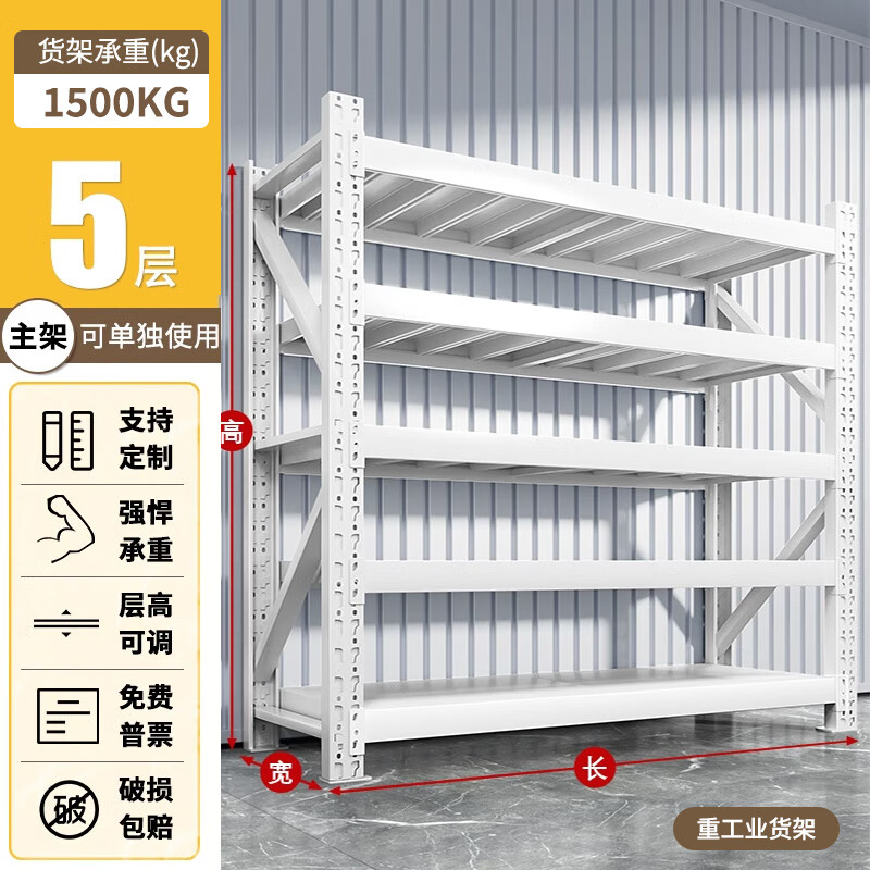 净魔师货架置物架仓储仓库家用落地储物间货物架加厚全钢多层展示架子 五层货架-中工业【1250KG】 -----无备注颜色默认发白色-----