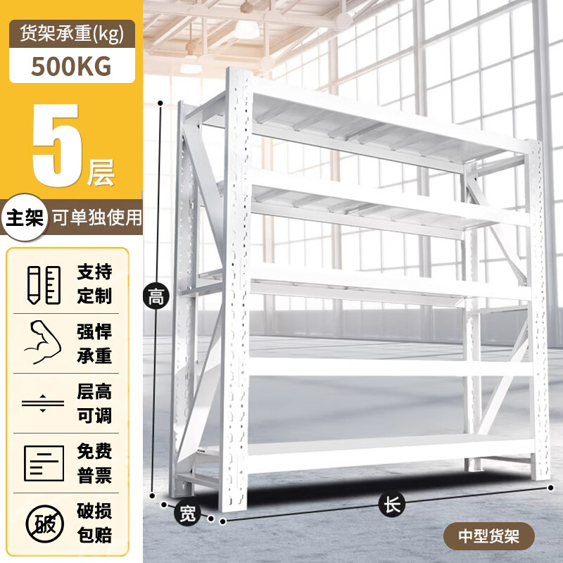 净魔师货架置物架仓储仓库家用落地储物间货物架加厚全钢多层展示架子 五层货架-中型【500KG】 -----无备注颜色默认发白色-----