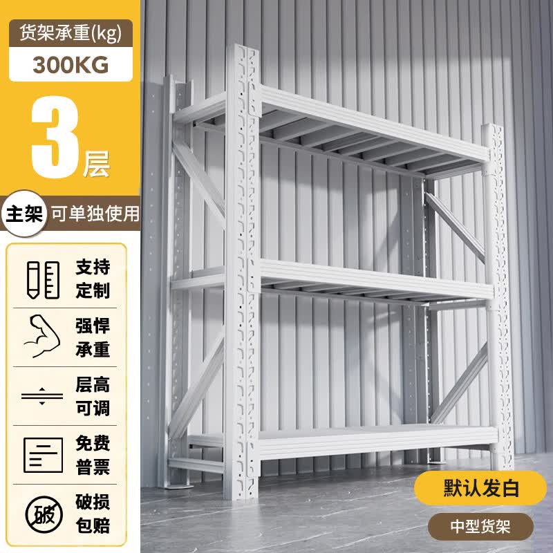 净魔师货架置物架仓储仓库家用落地储物间货物架加厚全钢多层展示架子 三层货架-中型【300KG】 --灰白/蓝色/黑黄/黑色/橘蓝--