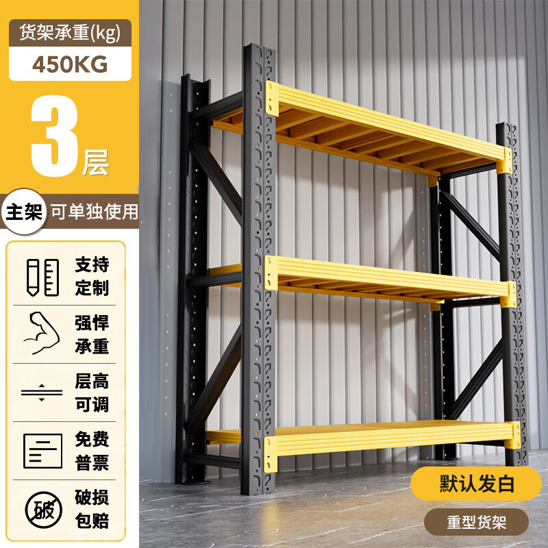 净魔师货架置物架仓储仓库家用落地储物间货物架加厚全钢多层展示架子 三层货架-重型【450KG】 --灰白/蓝色/黑黄/黑色/橘蓝--