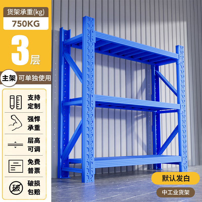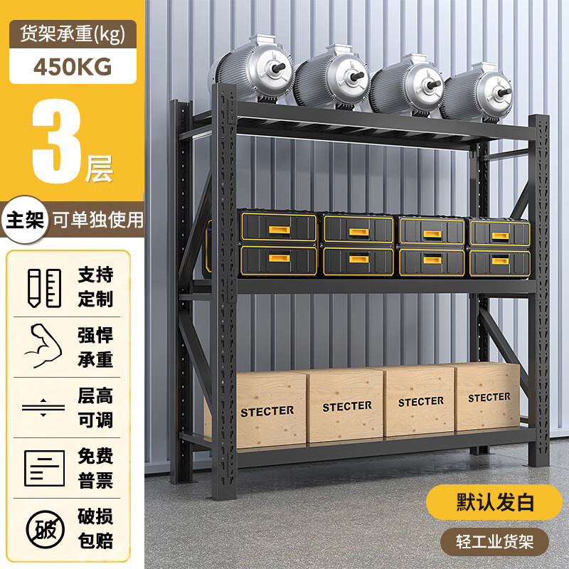 净魔师货架置物架仓储仓库家用落地储物间货物架加厚全钢多层展示架子 三层货架-中工业【800KG】 --灰白/蓝色/黑黄/黑色/橘蓝--