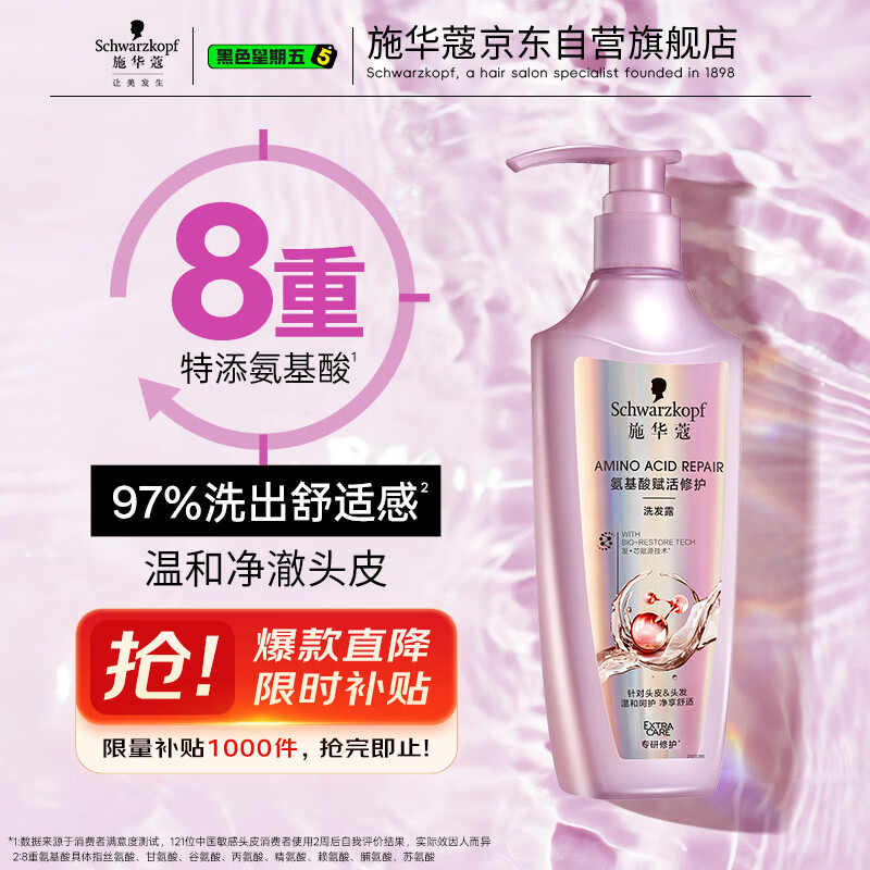 施华蔻(Schwarzkopf)氨基酸赋活修护洗发露600ml 无硅油洗发水 改善毛躁柔顺温和