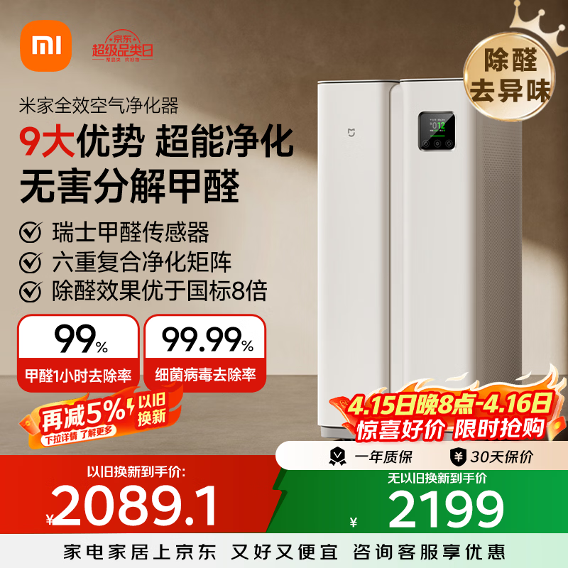 米家小米全效【无害分解式除醛】空气净化器 除敏除菌除雾霾异味智能数显