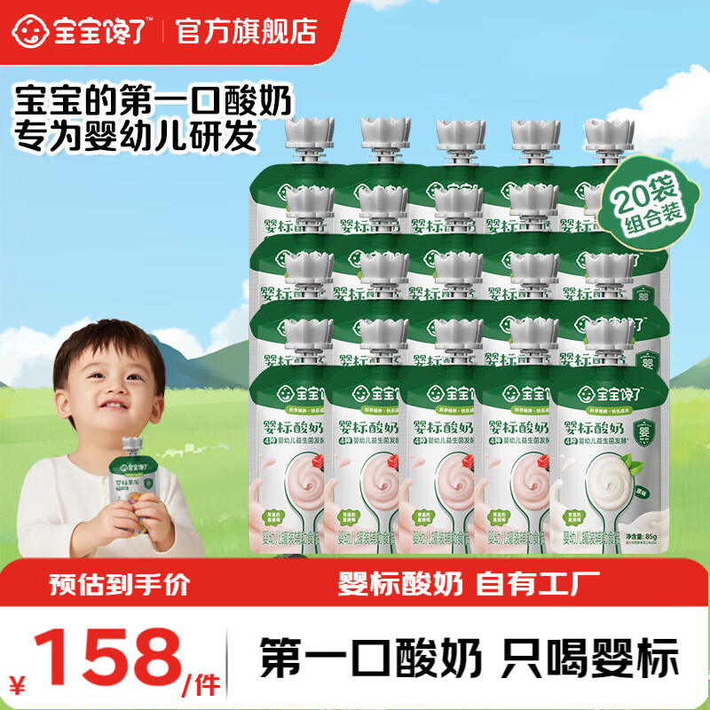 宝宝馋了婴幼儿酸奶6个月以上益生菌发酵宝宝零食儿童酸奶享宝宝辅食食谱 婴幼儿酸奶组合85g*20袋-赠果泥3袋