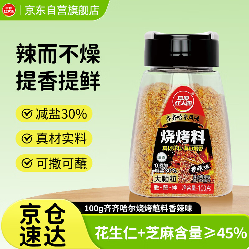 草原红太阳齐齐哈尔烧烤料(香辣)100g*1瓶 烧烤料烤肉蘸料花生碎干碟