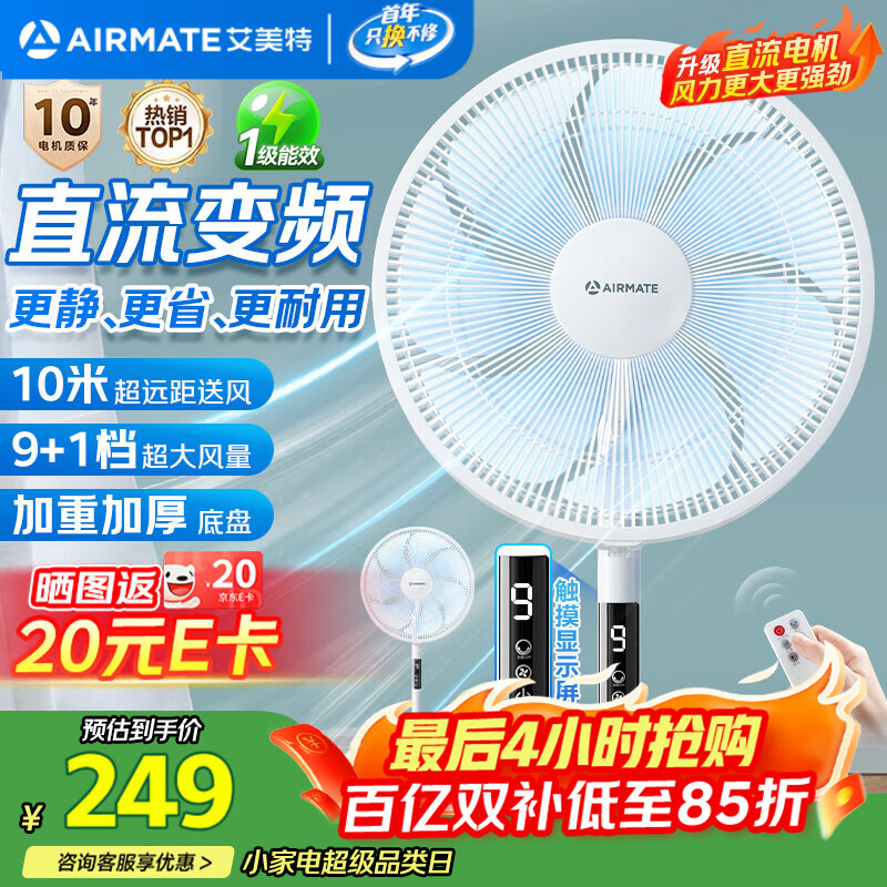 艾美特(AIRMATE)【直流变频】电风扇家用大风力智能遥控落地扇卧室安静轻音一级能效空气循环扇摇头节能小风扇