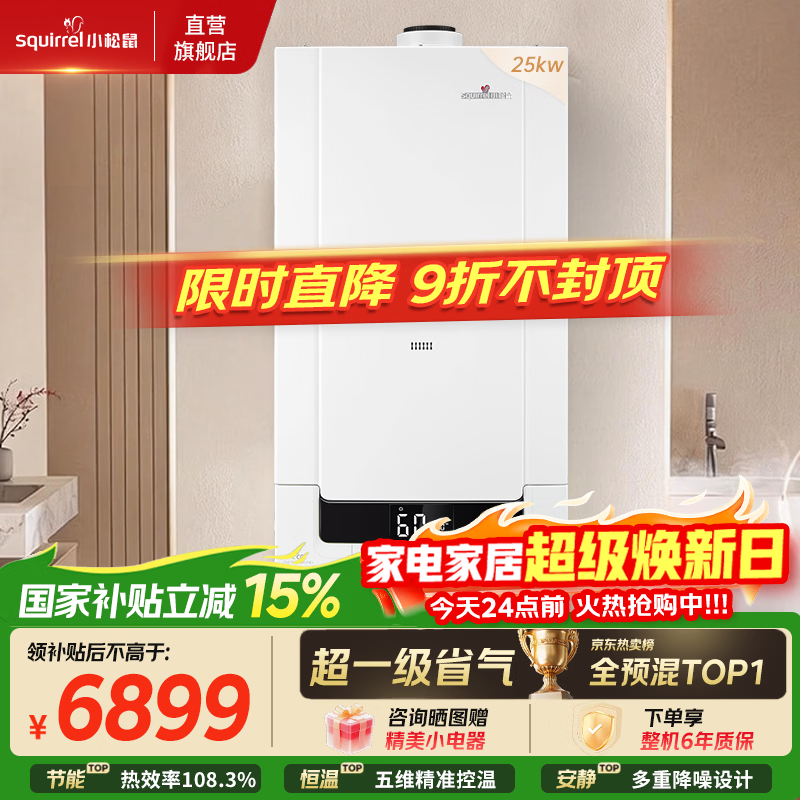 小松鼠(squirrel)全预混冷凝炉超一级能效燃气壁挂炉天然气供暖地暖暖气片采暖锅炉热水器自营国家补贴LL1GBQ25-Q70