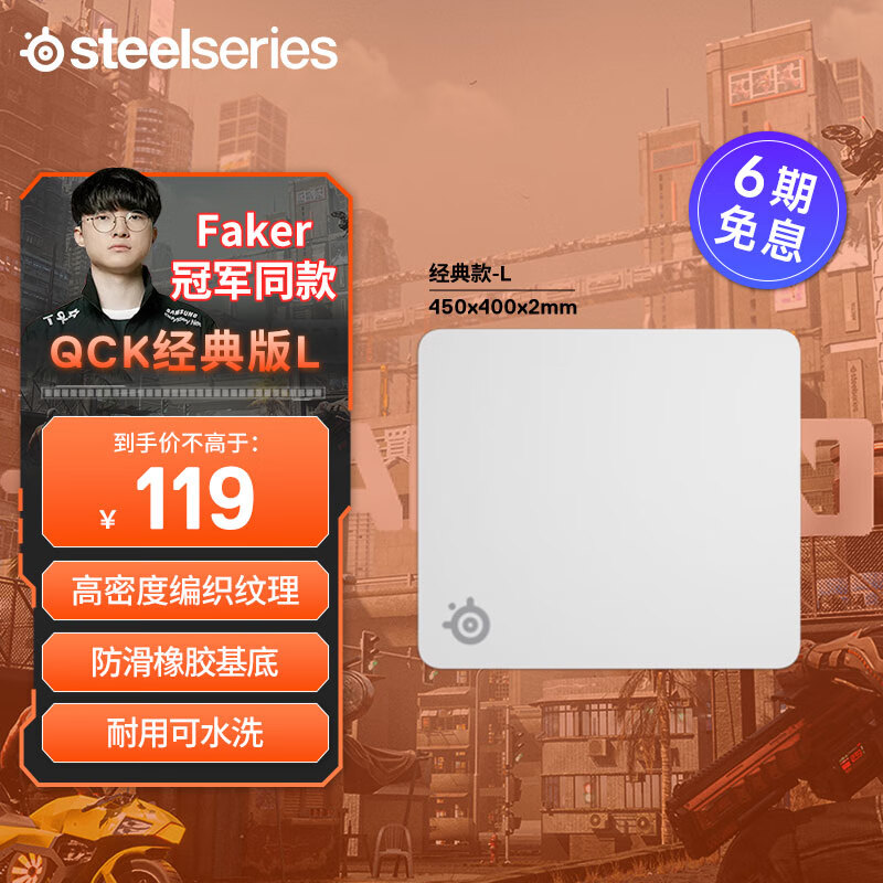 赛睿(SteelSeries)QCK系列 电竞鼠标垫 游戏职业电竞Donk同款鼠标垫 电脑桌垫加厚橡胶基底CSGO瓦罗兰特FPS用 QcK L 白色【450*400*2mm】