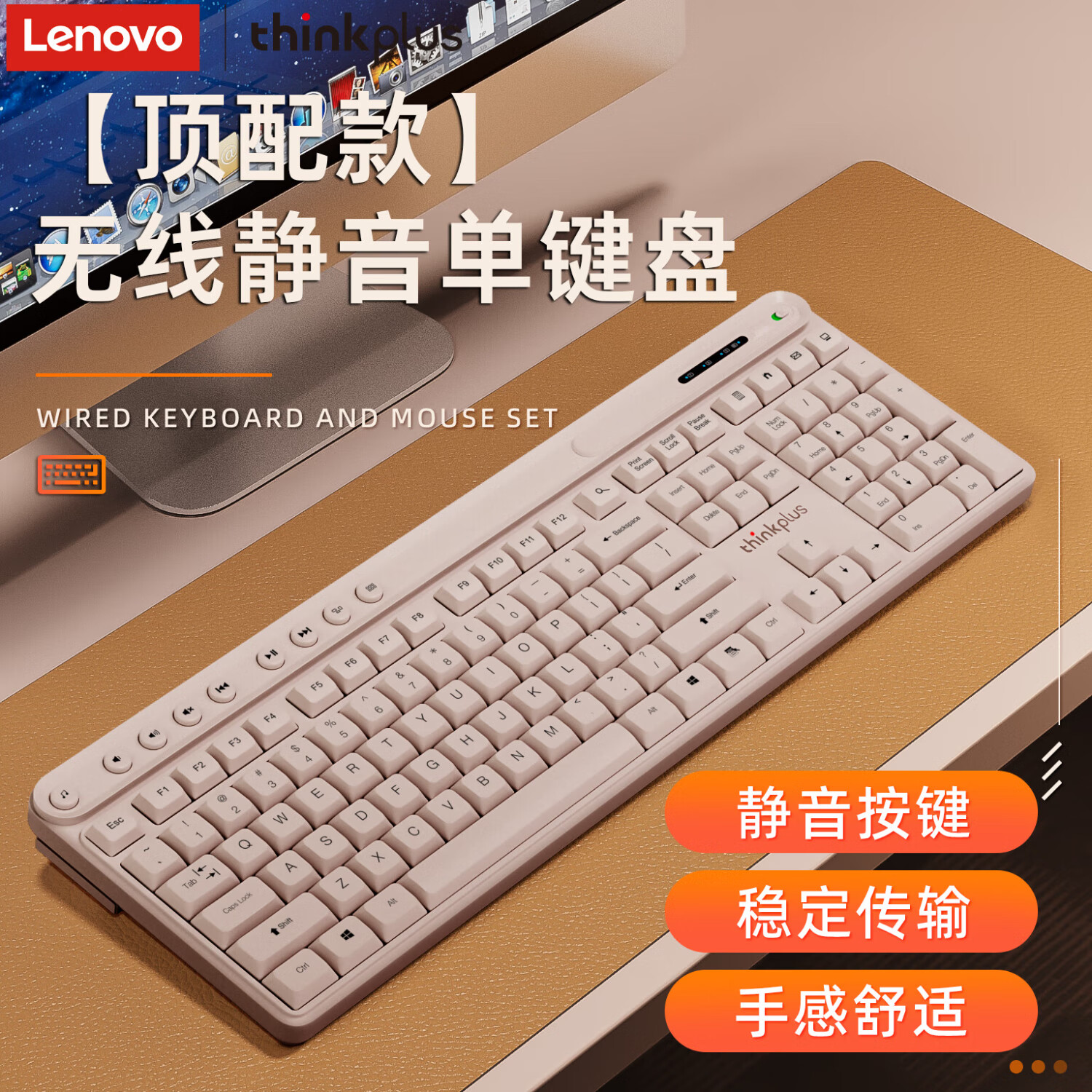 联想(lenovo)键盘鼠标套装 薄膜键盘有无线办公静音办公外接键盘便携 人体工学台式笔记本电脑键盘 顶配款单键盘白色【无线】