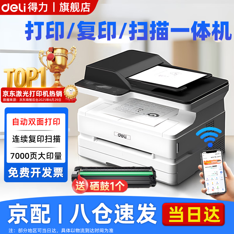 得力(deli)激光打印机黑白云打印无线WiFiA4学生家用办公打印复印扫描三合一多功能手机打印商用 【套餐1】M2500ADW+易加粉硒鼓1支