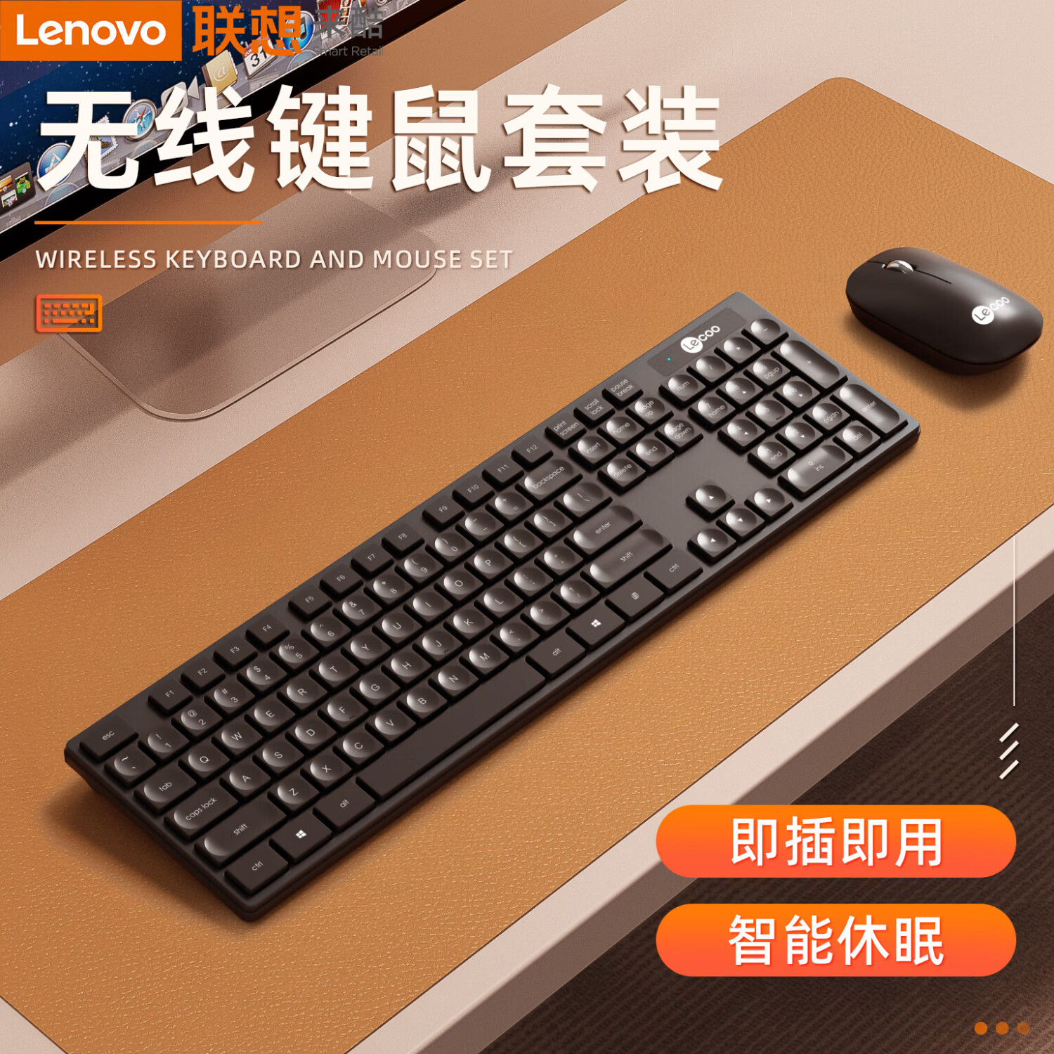 联想(lenovo)键盘鼠标套装 薄膜键盘有无线办公静音办公外接键盘便携 人体工学台式笔记本电脑键盘 黑色键鼠套装【水滴键帽】