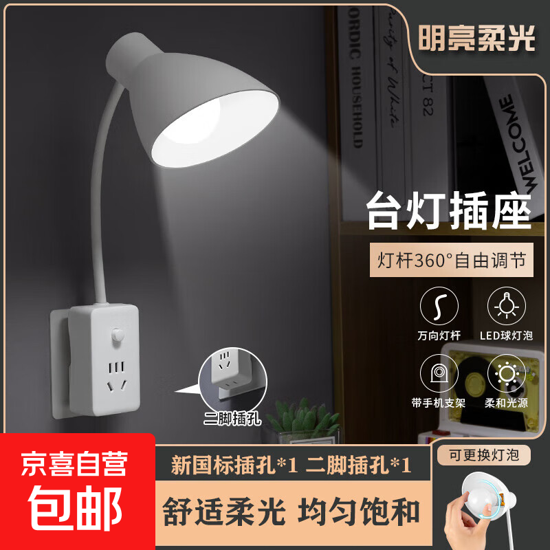 【京东物流】台灯插座插电小夜灯可更换灯泡卧室夜用阅读灯LED夜间照明灯床头灯 可更换灯泡(1插位)无线