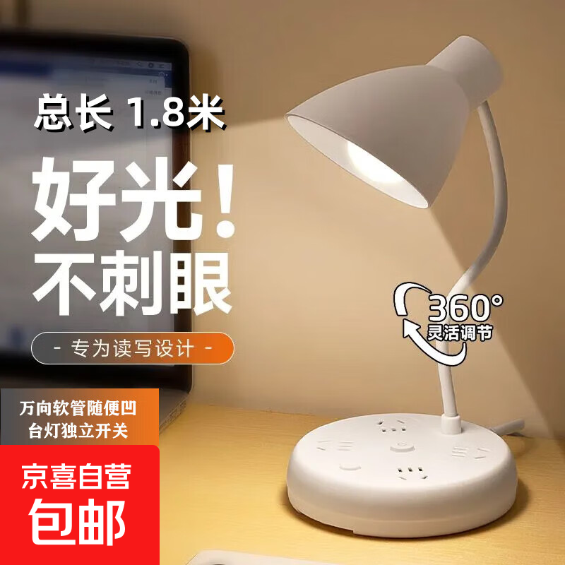 【京东物流】台灯插座插电小夜灯可更换灯泡卧室夜用阅读灯LED夜间照明灯床头灯 可更换灯泡(4插位无USB)1.8米