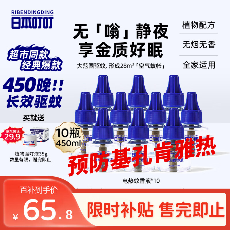 日本叮叮蚊香液电蚊香液婴儿孕妇驱蚊液450晚45ml*10瓶大容量补充液无香型