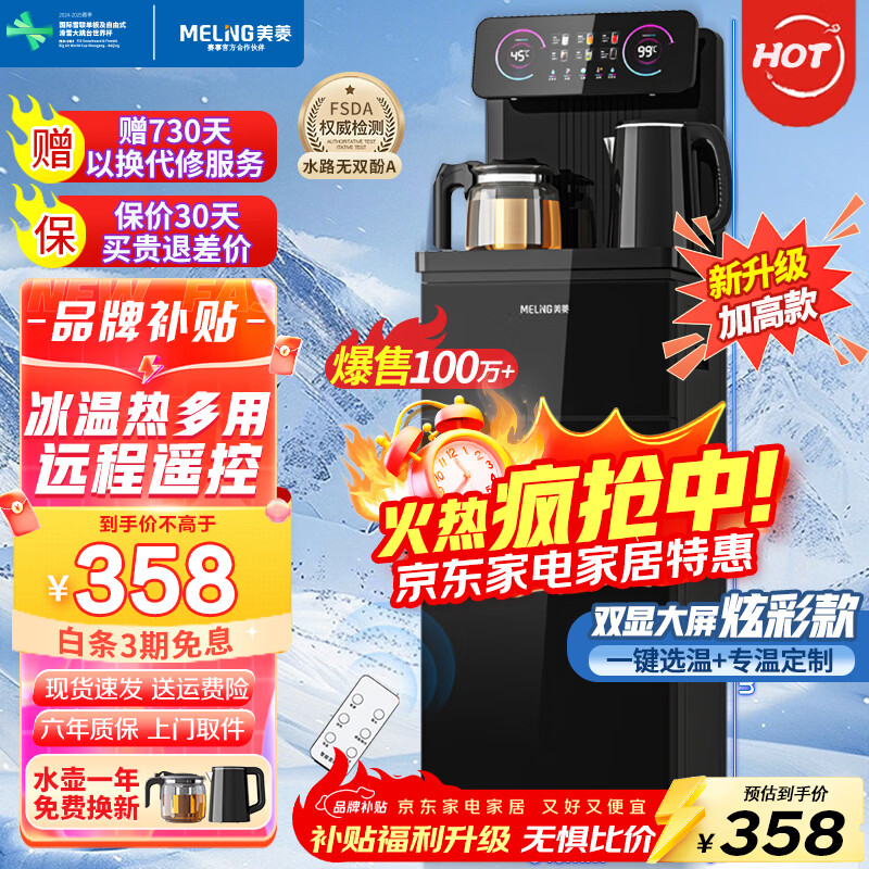 美菱(MeiLing)茶吧机 家用多功能智能遥控温热型立式饮水机 高颜轻奢【24H保温】 制冷制热型