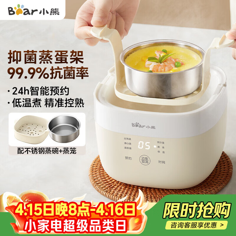 小熊(Bear)煮蛋器 蒸蛋器 温泉蛋机 智能定时自动断电 煮鸡蛋神器溏心蛋茶叶蛋 小型蒸锅早餐一体机ZDQ-T10Y2