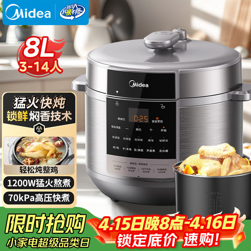 美的(Midea)电压力锅京东自营8升电饭煲大容量家用8-10人高压锅 全自动智能预约开盖炖煮煲汤饭锅MY-E8129