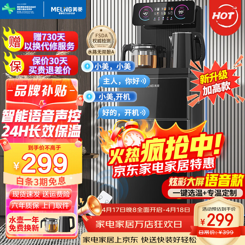 美菱(MeiLing)茶吧机 家用多功能智能遥控温热型立式饮水机 升级语音款【一键选温】 制热型