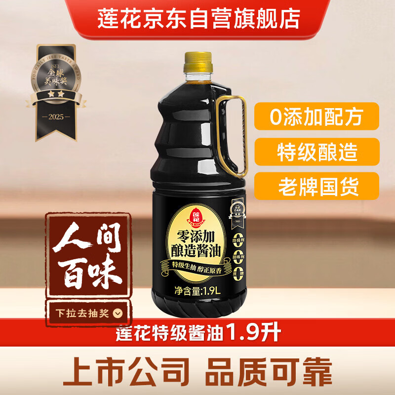 莲花0添加酿造酱油1.9L【特级】黄豆生抽凉拌炒菜家用厨房调料