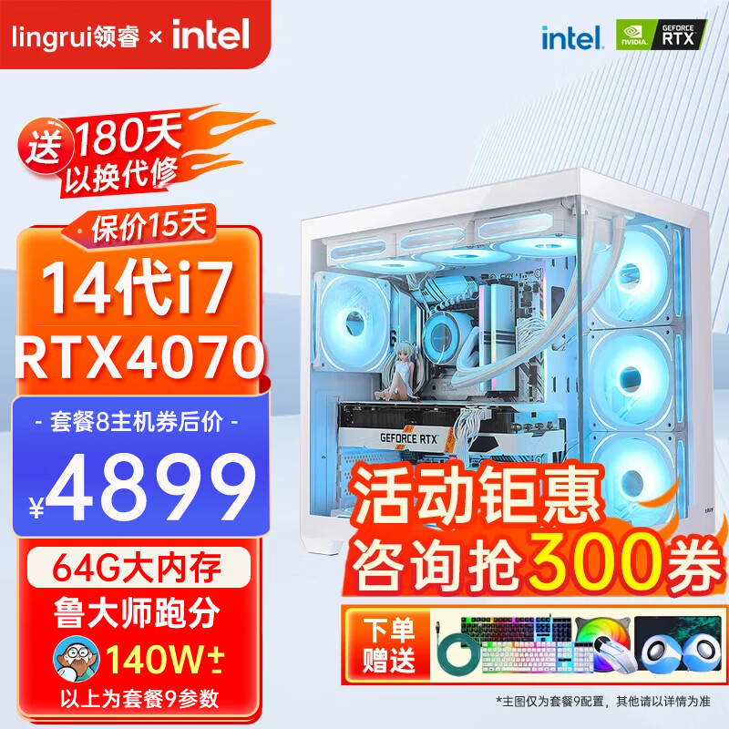 领睿英特尔酷睿i7升24核RTX4060独显64G内存台式电脑主机黑神话悟空3A游戏办公设计师渲染组装电脑全套 八:48线程强芯+64G+RTX4060直播主机 主机+32英寸高清显示器