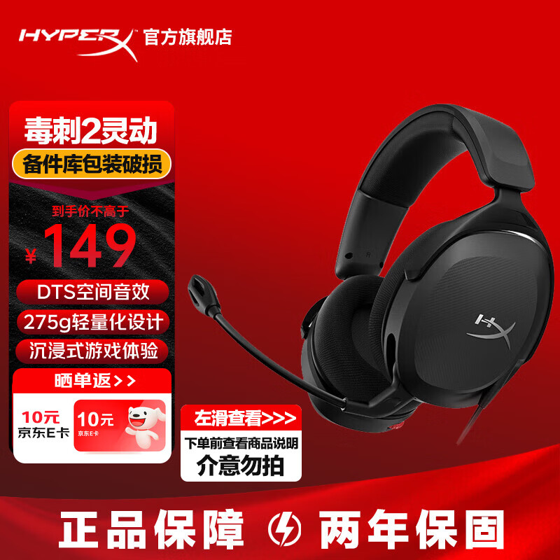极度未知(HYPERX)【已拆封】飓风2飓风3云雀2阿尔法游戏耳机电竞耳机有线笔记本电脑手机fps吃鸡csgo游戏耳麦 毒刺2灵动【备件库包装破损】