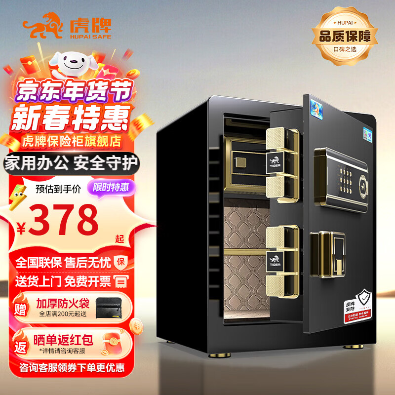 虎牌保险柜家用小型保管箱指纹密码WIFI办公财务专用保险柜全钢防盗可入墙保险箱 金虎S系列 35cm黑色 指纹款(钥匙+密码+指纹)