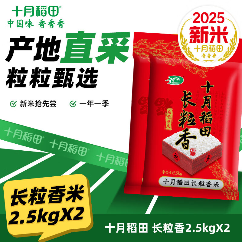 十月稻田 【2025年新米】长粒香米2.5kg*2袋 东北大米10斤 香米 粳米 长粒香米 2.5kg*2袋