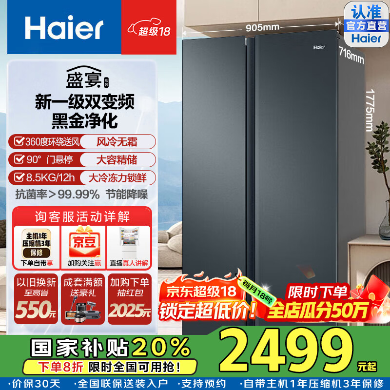 海尔(Haier)国家补贴20%冰箱双开门冰箱616升对开门二门电冰箱一级能效变频大容量超薄家用冰箱风冷无霜双门 【咨询领补贴】BCD-616WGHSSEDC9